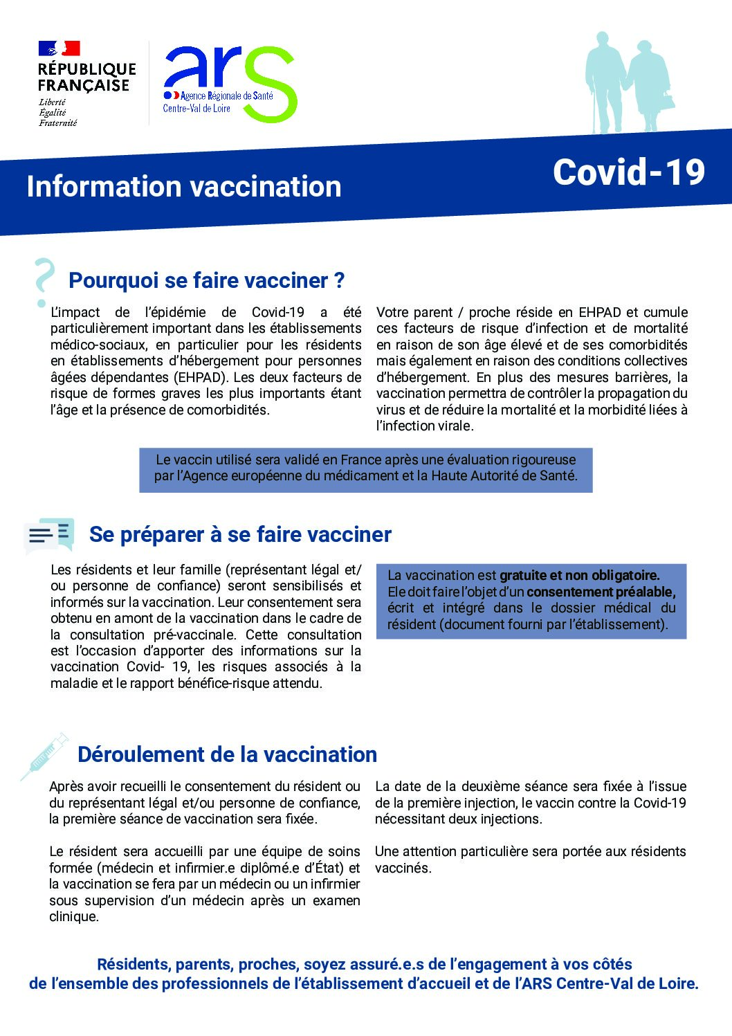 - 3ème étape : la vaccination au sein de l’établissement effectuée en fonction de l’approvisionnement en vaccins.