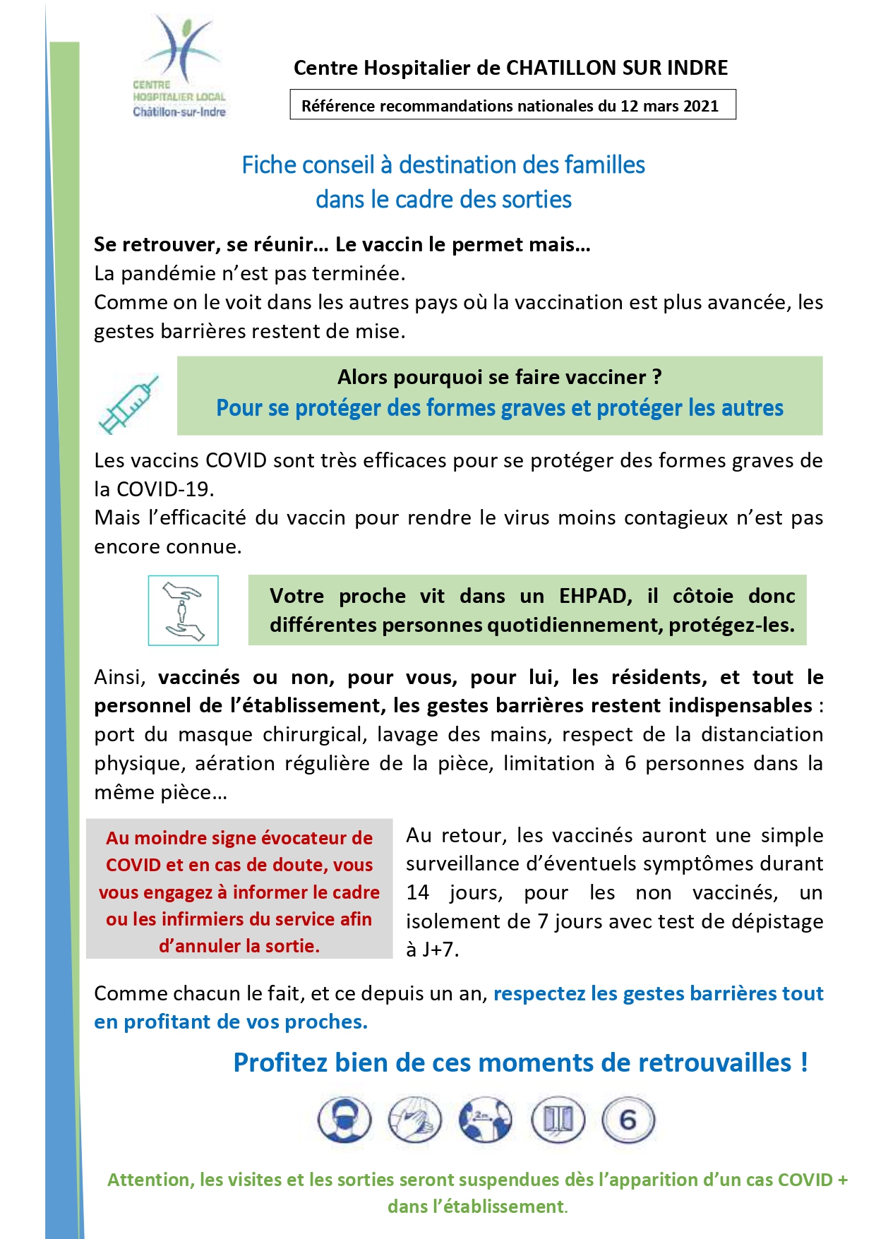 Les sorties des résidents / patients dans la famille sont autorisées (avec le délai de prévenance de 48 heures).